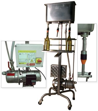 Automatische und regulierbare Abfüllhöhe der Flaschen. Die Behälter sind aus