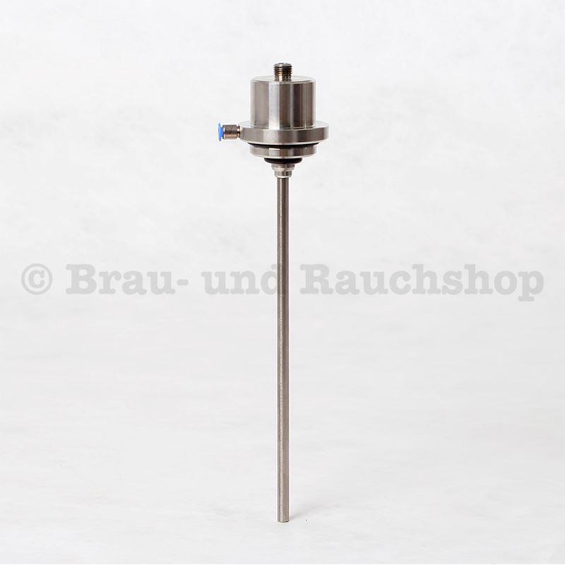 Die Abfüllröhrlänge beträgt 250 mm und muss für die jeweilige Flaschenhöhe evt. gekürzt werden ( oder die gewünschte Länge bei der Bestellung angeben ).
