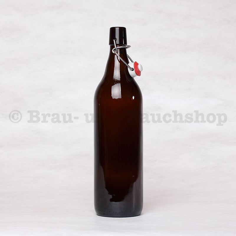 1 Liter-Bügelflasche braun, inklusive Bügel, Mehrwegqualität