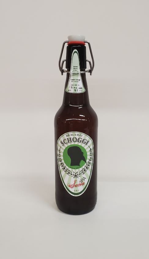Flaschenvergorenes IPA Bier aus der Brauerei Schoggi, ein naturtrübes Bier,