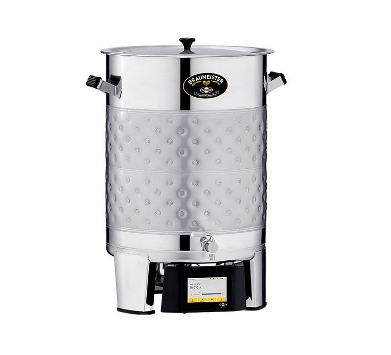 Jetzt noch neuer: Das ist der #Braumeister PLUS mit neuer Brausteuerung mit unfangreichen Möglichkeiten und dem schon bekannten Kühlmantel. Die neue Brausteuerung braut mit Ihren individuellen Rezepten und führt Sie durch den Brauprozess. Mit dem in der Steuerung integrierten Wifi-Modul können Rezepte automatisch synchronisiert, oder Updates geladen werden. In allen Brauphasen wird die Zeit und Temperatur exakt gehalten (Messung in der Zugstange mitten im Malz). Der werkseitig angeschweisste Doppelmantel macht bisherige Zubehörteile überflüssig und gibt Ihnen noch mehr Freiheit beim Bierbrauen.Im Gegensatz zu den umständlichen Gerätschaften mancher anderer Hobbybrauer muss beim Braumeister auch nicht die ganze Zeit gerührt werden. Durch die patentierte Malzrohr-Technik wird die Bierwürze schonend und bequem umgewälzt. So brennt nichts an und es muss während den Brauphasen auch nicht umgefüllt werden. Zum Ablassen des Schmutzwassers befindet sich am Kesselboden ein zusätzlicher Ablauf mit Hahn, was das Reinigen erheblich erleichtert.