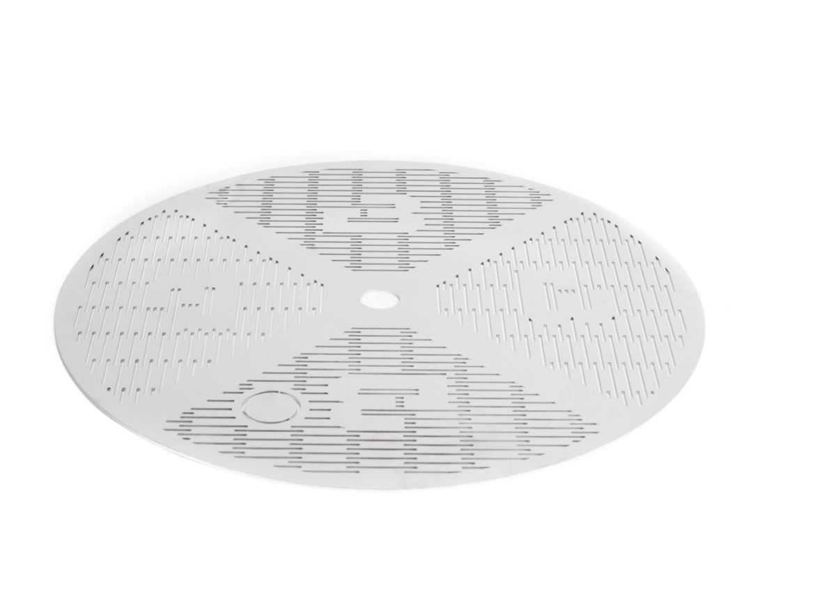 Lasergeschnittene Filter aus gestrahltem und elektropoliertem Edelstahl.