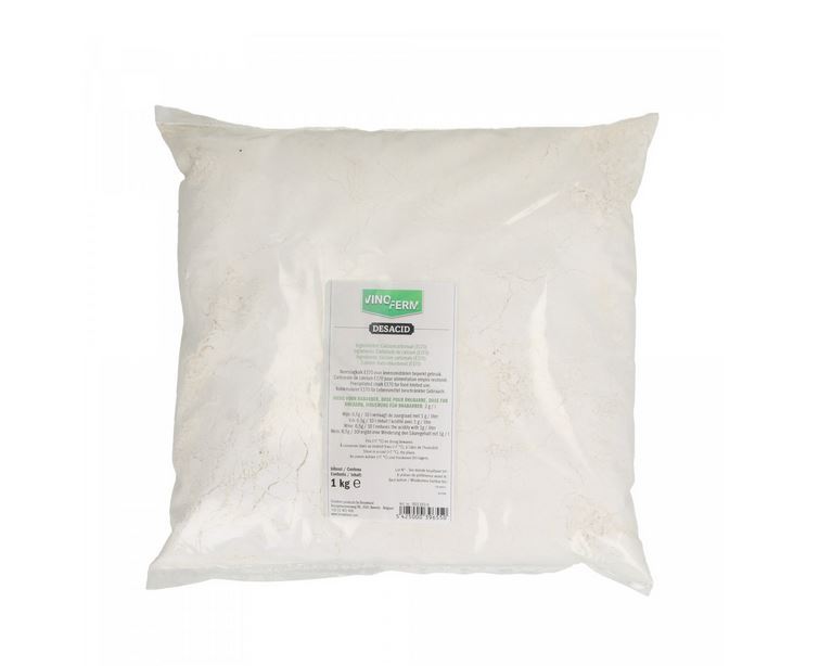 Dosierung: 6,5 g/10 l ergibt eine Minderung der Säure von 1 g/l im Wein.