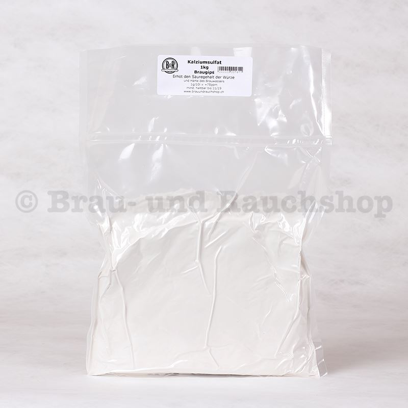 Kalziumsulfat / Braugips (E516) wird zum Reduzieren des Maische-pH und zur Erhöhung des Wasserhärtegrades verwendet.