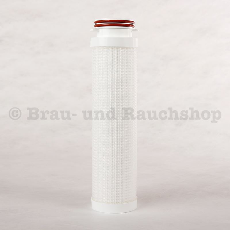 Gefaltete Polypropylen-Filterkartusche zur Absolutfiltration. Dieser Typ von Filterkartusche filtert Verunreinigungen sehr effizient, hat hohe Durchflussraten und ist mit vielen Filtersystemen kompatibel. Dank dieser Eigenschaften ist die Filterkartusche ein ideales und kostengünstiges Filtersystem für Wein, Bier, Säfte und andere Getränke.
