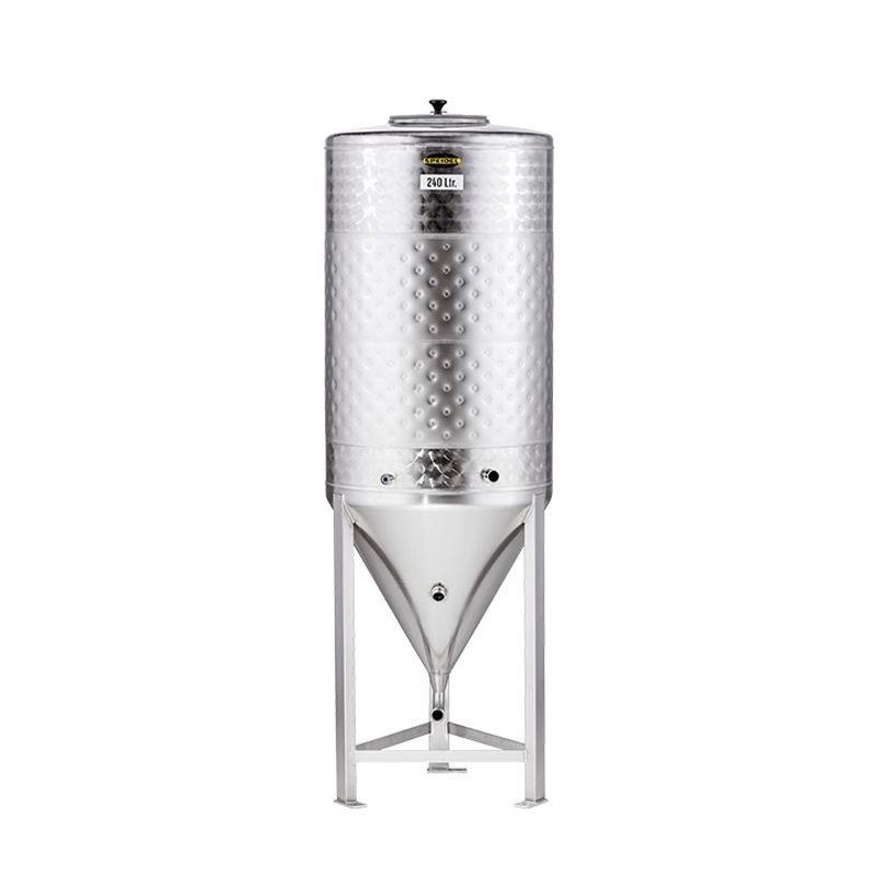 Zur Vergärung kleinerer Mengen Bier empfiehlt sich der Gärtank FD-ZKG. Er steht stabil und sicher auf drei Füßen. Auch der FD-ZKG ist komplett aus Edelstahl gefertigt und seine spezielle 3D-Innenoberfläche erleichtert die Reinigung ungemein.