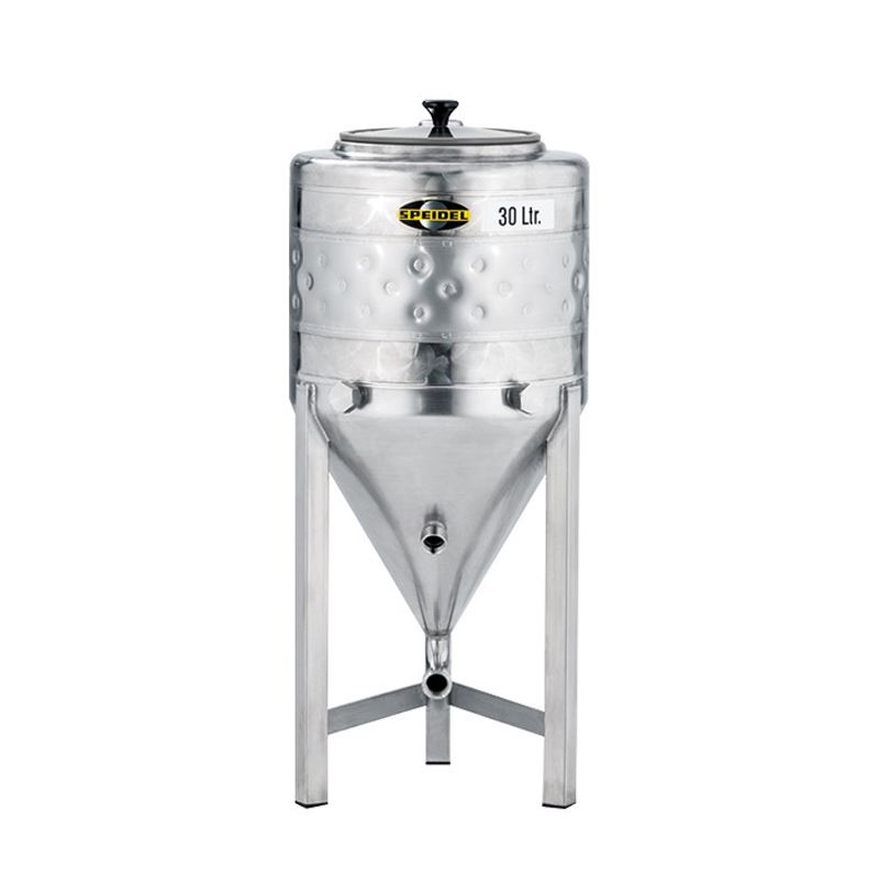 Zur Vergärung kleinerer Mengen Bier empfiehlt sich der Gärtank FD-ZKG. Er steht stabil und sicher auf drei Füßen. Auch der FD-ZKG ist komplett aus Edelstahl gefertigt und seine spezielle 3D-Innenoberfläche erleichtert die Reinigung ungemein.
