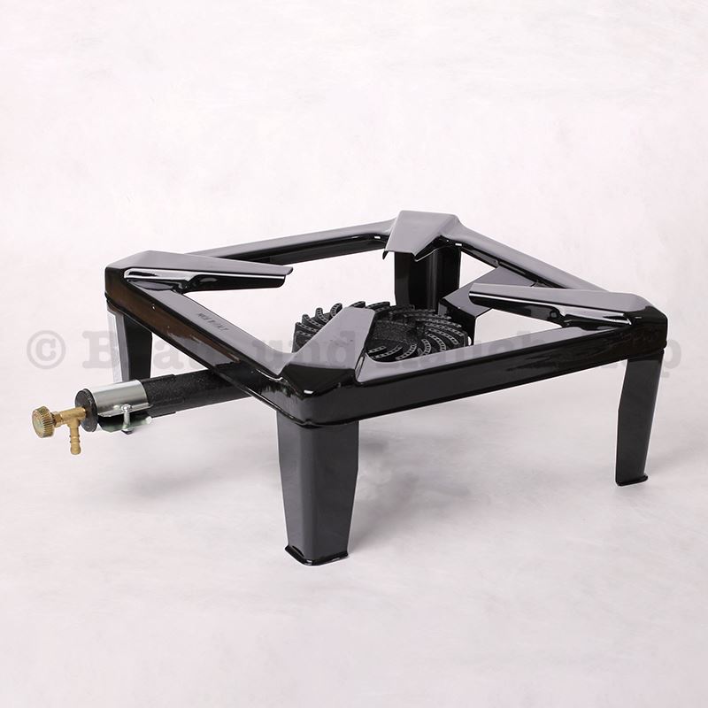 Solide Ausführung in gelacktem Profilstahl, mit Tülle aus Gusseisen und Regulierhahn. Nennleistung 7 kW. Ohne Zündsicherung. Ausschliesslich für den Einsatz im Freien. Geeignet für Butan und Propan. Für ein Gebräu von bis zu 50 Litern.
