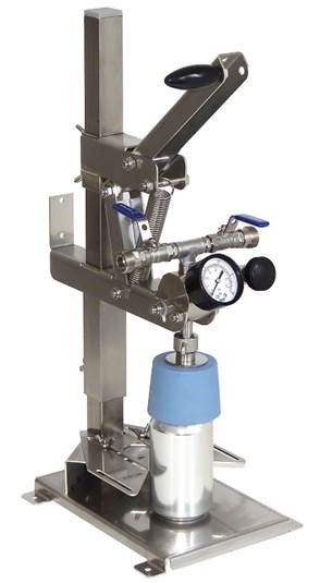 Der Dosenfüller wird im Vergleich zu den anderen Füllern mit Ständer mit einem veränderten Spannprinzip gebaut. Eine bedeutend höhere Andruckkraft ist damit erreichbar, sodass Dosen sicher verschlossen werden.