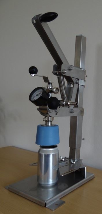 Gegendruckfüller für Bier, CO2-haltige Getränke, Sekt und Wein mit Ständer für Dosen und Partyfässer Aufbau Der Gegendruckfüller besteht aus einem Edelstahlständer und einer verschiebbaren Halterung mit Edelstahlfüllkopf. Der Füllkopf wird auf die Dosenhöhe eingestellt und die Halterung in dieser Stellung mit einer Flügelschrauben arretiert.