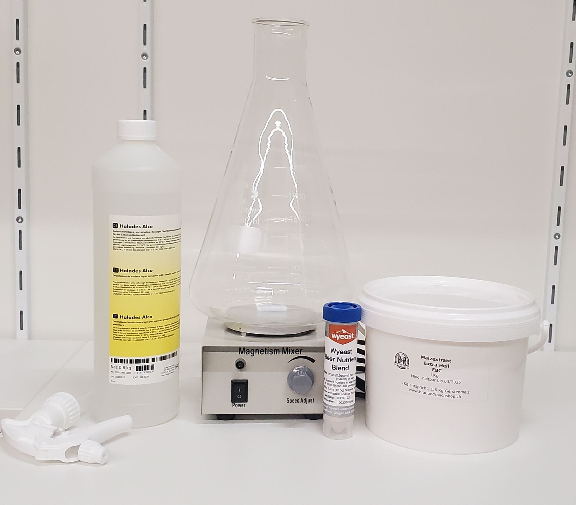 Enthält alles, was du für einen Hefestarter und die Vermehrung von Hefe brauchst. Hiermit stellst du die optimale Anstellmenge an aktive Hefe für deinen Sud her.