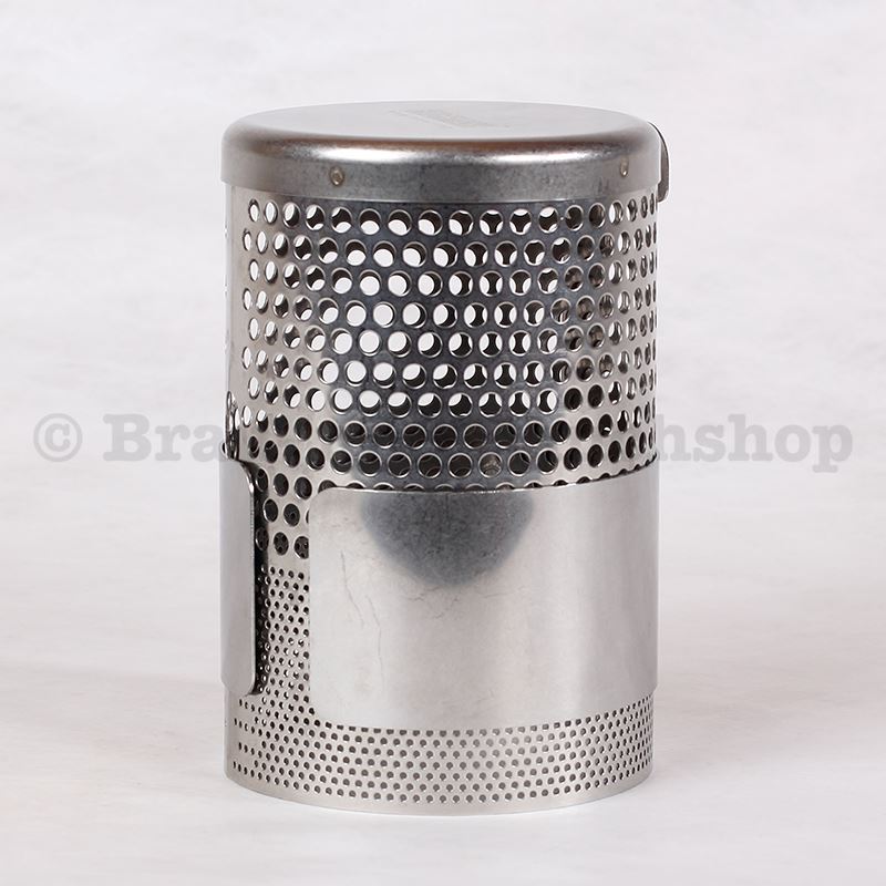 während ein Großteil der Würze durch einen Grobfilter von oben nach unten abgezogen wird. Wenn der Füllstand der Würze gerade noch ein paar Zentimeter vom Topfboden entfernt ist, kommt durch Anheben der Abschirmung das Feinfilterelement zum Einsatz und dann wird die restliche Würze gefiltert. Auf diese Weise muss der Feinfilter nur einen kleinen Teil der Würze filtern statt die gesamte Menge. Der HopBlocker™ filtert 90 - 95 % des