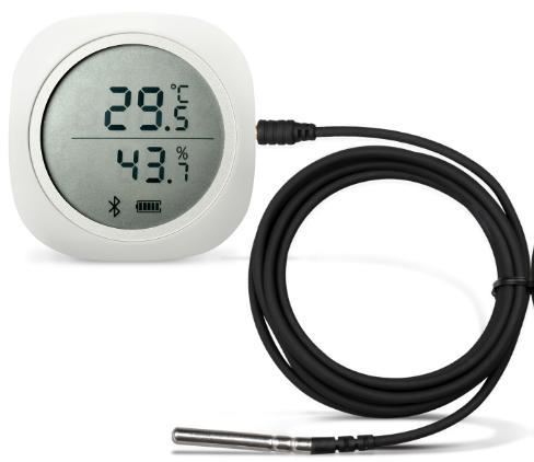 Das Hygrometer besitzt ein Display, das Temperatur, Luftfeuchtigkeit und Batteriestand anzeigt. Es kann zwischen Celsius und Fahrenheit per Knopfdruck gewechselt werden. Für den Betrieb werden zwei AAA-Batterien benötigt, die separat erworben werden müssen. Die Abmessungen des Produkts betragen 63,5 x 20 mm und das Gewicht 53 g. Der Temperaturbereich des inneren Sensors liegt bei -40 bis 60 °C, der des externen Fühlers bei -40 bis 100 °C. Die Luftfeuchtigkeit kann zwischen 0 und 99 % RH gemessen werden. Die Mess- und Aufzeichnungsintervalle können auf 10 s, 30 s, 1 min, 2 min, 5 min, 10 min und 30 min eingestellt werden. Standardmässig werden die Daten in einer Minute erfasst und können für ungefähr 20 Tage auf dem Sensor gespeichert werden.