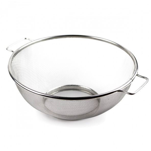 Edelstahlsieb mit einem Durchmesser von 25 cm.