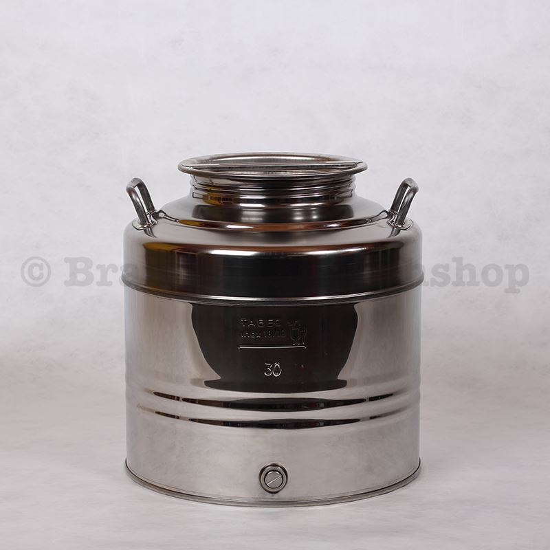 Kanne aus Edelstahl mit flachem Boden, Schraubdeckel und Blindstopfen 1/2 Zoll.