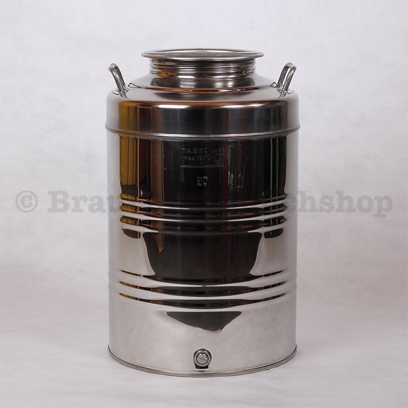 Kanne aus Edelstahl mit flachem Boden geschweisst, Schraubdeckel und Blindstopfen 1/2 Zoll.