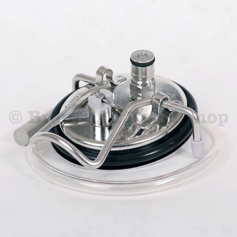 Keg Deckel mit NC Gas Anschluss, PVC Schlauch mit 0.5micro Luftstein Inox.