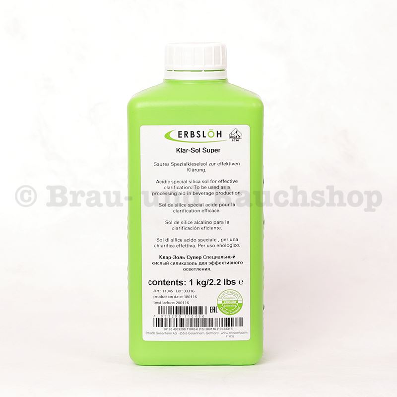 Klar-Sol Super ist ein hochwirksames und effizientes saures Kieselsol mit milchig-weißem Aussehen zur Klärung von Wein oder Saft. Zu verwenden in Verbindung mit einer Eiweiß-Behandlung (Gelatine oder Hausenpaste).Welches Schönungsmittel kann ich am besten verwenden?Versuch und Irrtum ist immer noch eine der einfachsten und besten Methoden: nehmen Sie mehrere Proben von dem zu klärenden Wein und geben Sie diese in Reagenzgläser. Geben Sie in jedes Reagenzglas einige ml oder Gramm eines anderen Klärmittels. Auch ein Reagenzglas mit Wein/Saft und pektolytischem Enzym und ein anderes mit Alfa-Amylase (bei stärkehaltigen Früchten) sind nützlich. Einige Stunden klären lassen und Sie sehen sofort, welches Schönungsmittel das beste Ergebnis erzielt.
