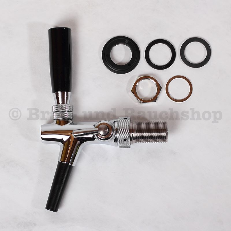 Kontermutter. 10 mm Ausführung. Der Schankhahn ist selbstschließend. Umbau auf nicht selbstschließend ist durch