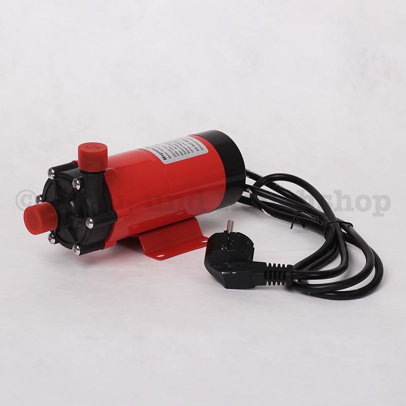 Hochwertige Mehrzweck Magnetpumpe. Geeignet zum Pumpen von Flüssigkeiten bis zu 90 °C, nicht zum Fördern von kochender Würze. Die Pumpe darf nicht trocken laufen.Eigenschaften