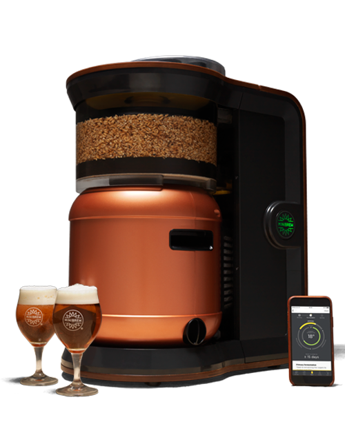 Für die Menschen, die gerne Bier trinken, aber auch selbst Bier brauen möchten, ist MiniBrew die Maschine, die Sie für ein stressfreies Brauen benötigen. MiniBrew wird aus lebensmittelechten Materialien mit einer hochwertigen Holzoberfläche hergestellt und ist ein echter Hingucker in Ihrem Zuhause. Die Maschine wird vollständig von einer App gesteuert und führt Sie durch den gesamten Brühvorgang. Während der Gärung können Sie den Status des Kegs überprüfen. Wenn Ihr Bier fertig ist, können Sie das frische Craft Beer direkt vom Fass trinken! Keine Flaschen benötigt. Wenn Sie mehr Bier gleichzeitig brauen und gären möchten, können Sie mehr Fässer tauschen.