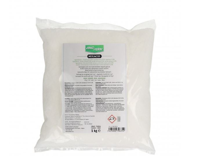 Eine ideale Mischung für eine ausgeglichene Erhöhung des Säuregehaltes von Säften/Weinen. Enthält Zitronensäure, Weinsäure und Apfelsäure. Dosierung: 10 g/10 l erhöhen den Säuregehalt um 1 g/l.