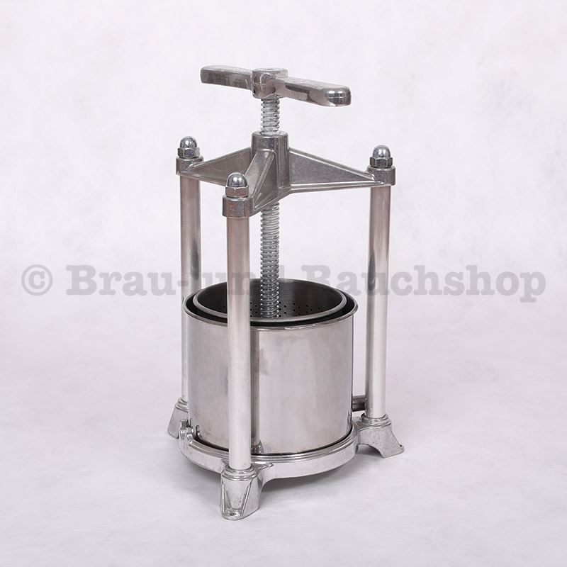 Zunächst den Käsebruch in den Presskorb füllen und anschliessend pressen. Die Molke kann durch den Aussenkorb problemlos abfliessen und aufgefangen werden. Der innere Presskorb kann zusätzlich als Käseform verwendet werden. Alle innenliegenden Einzelteile sind einzeln herausnehmbar, somit können die Teile leicht gereinigt werden.