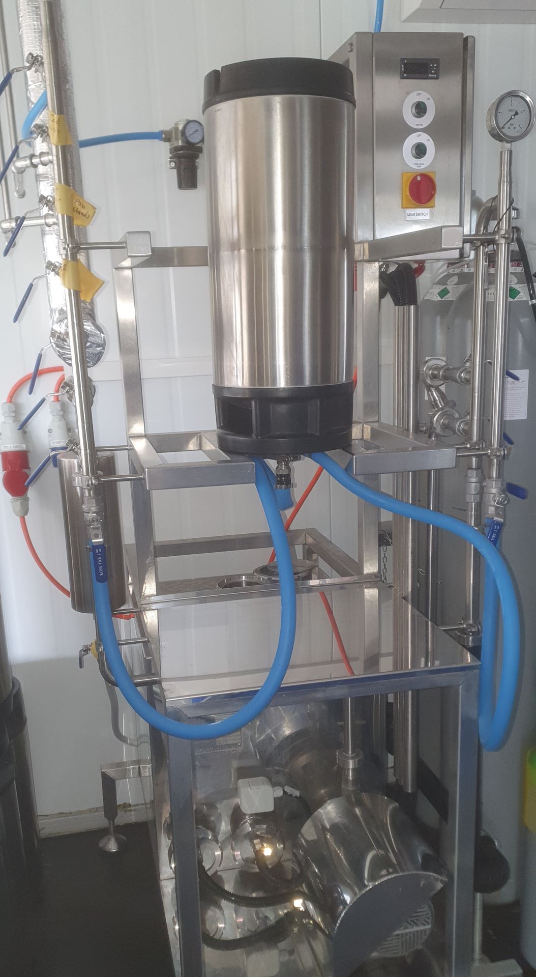 Die KWF-10 ist eine vollständig aus Edelstahl (AISI 304) gefertigte Maschine zum Reinigen und Befüllen von Kegs mit einem Fassungsvermögen von 15 bis 50 Litern. Die Maschine ist mit einem Vorratsbehälter für die Desinfektionslösung, Heizspiralen, einer Pumpe und einem Bedienfeld zur Steuerung der Temperatur und der Pumpe ausgestattet.