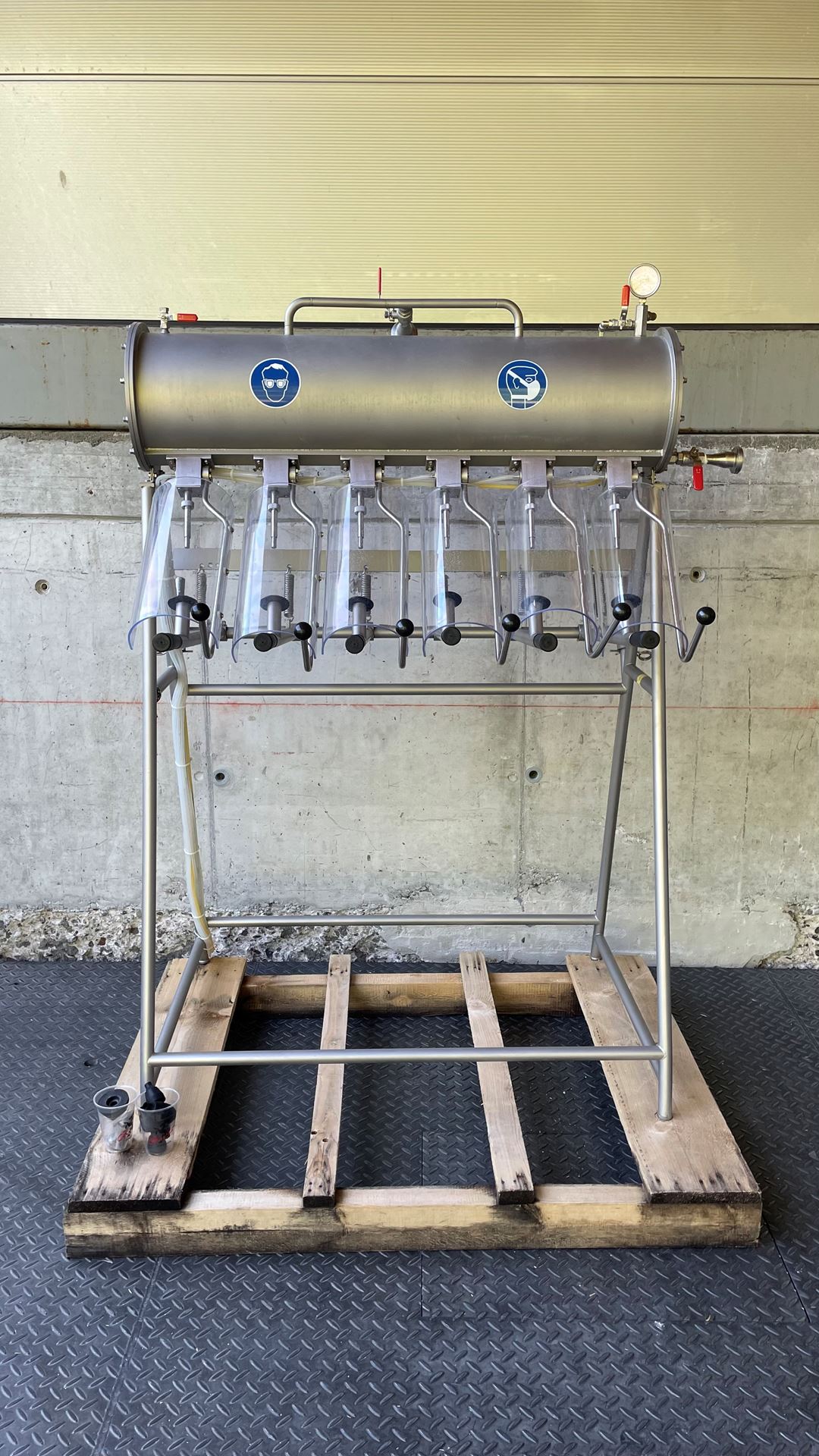 Die Abfüllanlage arbeitet auf der Basis von Druckausgleich. Über den Anschlusshahn für CO²,wird der