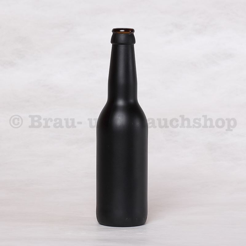 Matt schwarze gespritztes Grünglas.EinwegflaschenInhalt 0,33 Liter, 26 mm1995 StückAchtung: Palettenzustellung nur gegen Unterschrift. Erfolglose Zustellungen werden weiterverrechnet.