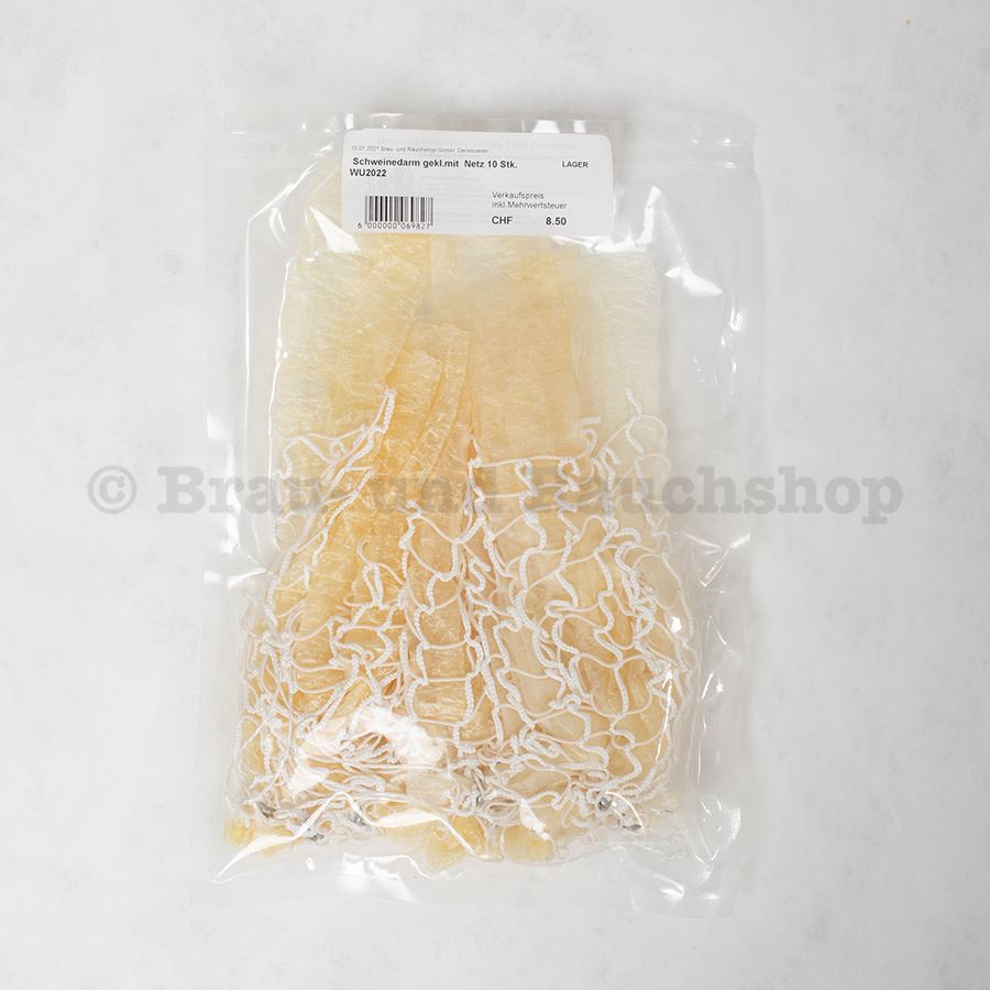 Geklebter Schweinedarm mit weissem NetzKaliber 46mmx280mm