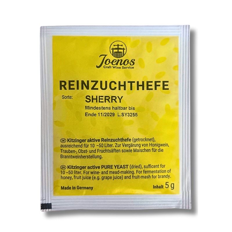 Säckchen Sherry Trockenhefe für 50 Liter ausreichend.
