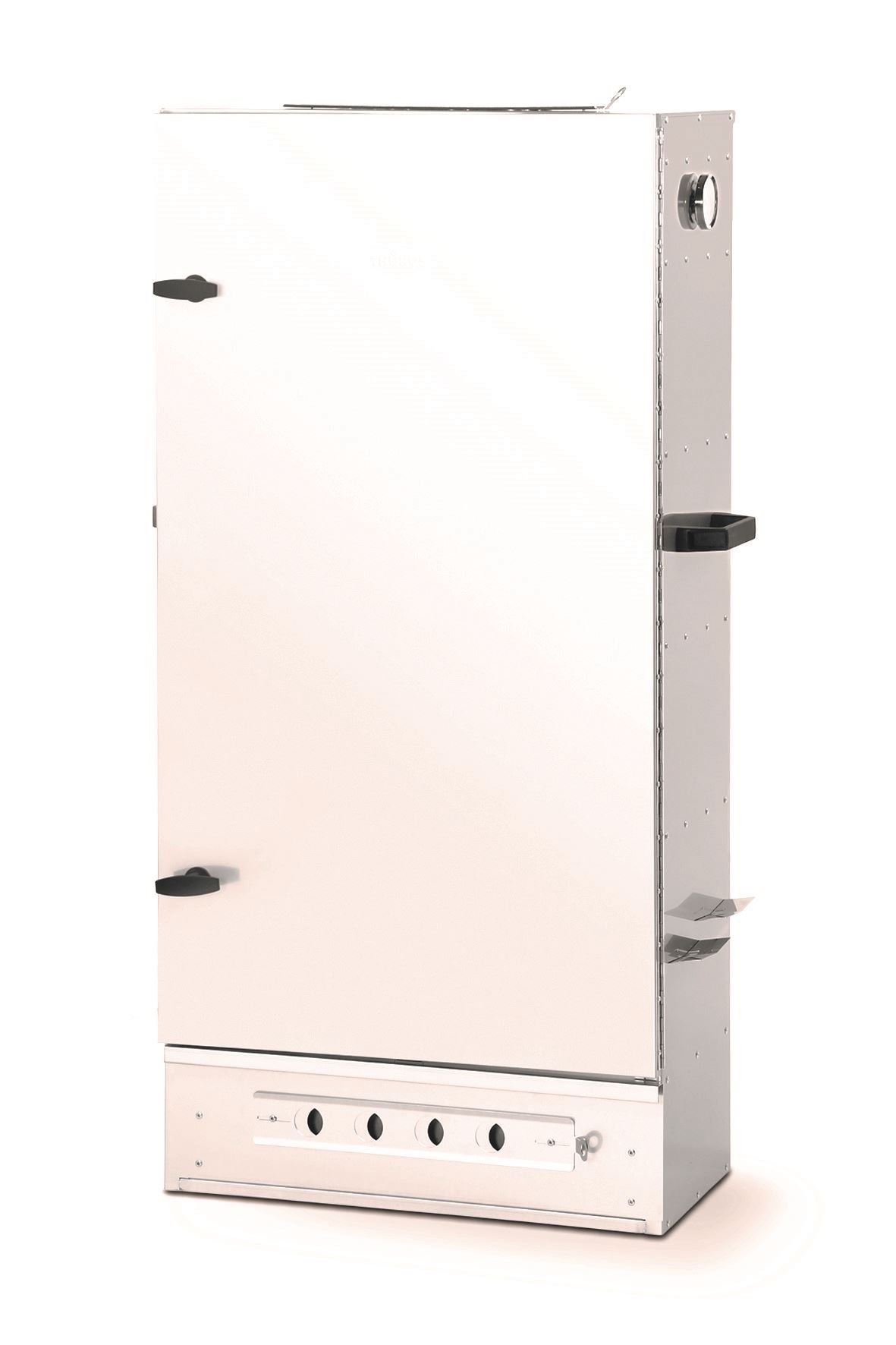 Die Räucherschränke sind mit einer befestigten Tür (mit Scharnieren) ausgestattet. Die Räucherschränke sind komplett aus hochwertigem, antimagnetischem Edelstahl (V2A/4301 - 1mm) gefertigt. Made in Germany