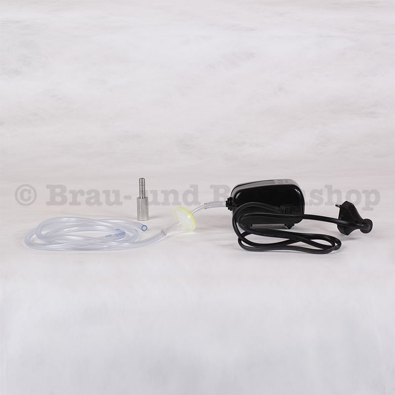 Kompletter Belüftungssatz mit Belüftungspumpe 2 l/h, 2,5 W; Edelstahl Belüftungsstein; Filter 0,2 µm und 1 m Schlauch.