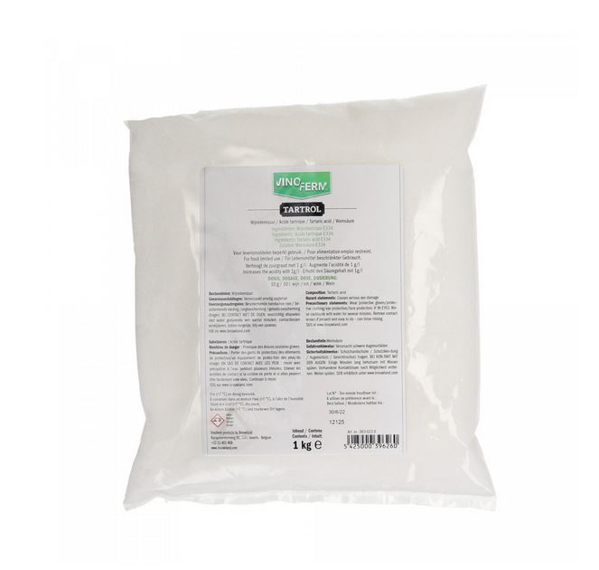 Dosierung: 10 g/10 l erhöhen den Säuregehalt um 1 g/l.