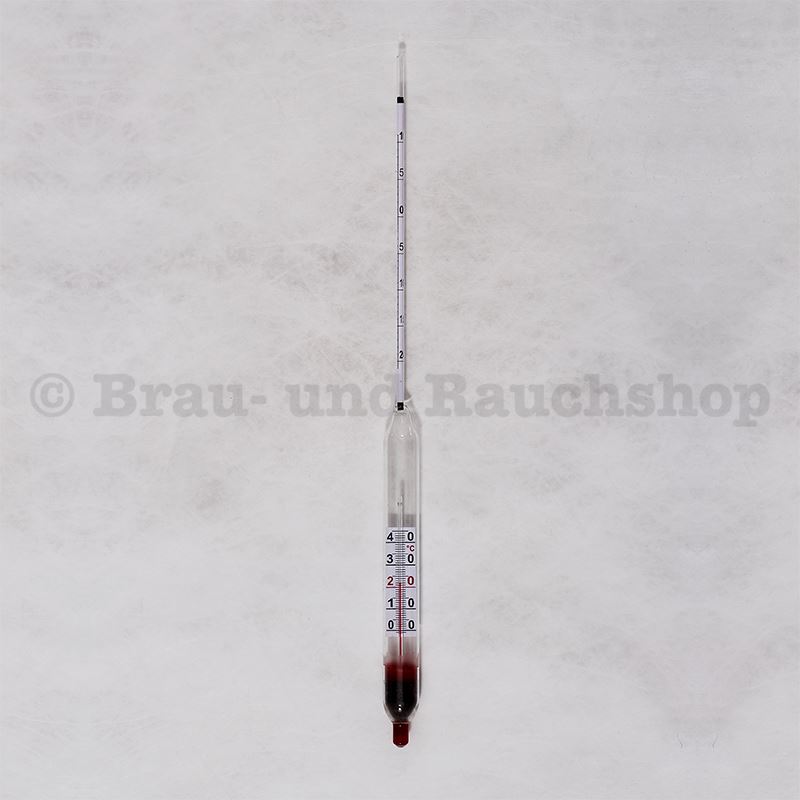 Für eine genaue Bestimmung des Alkohol- und Restzuckergehaltes, auch in gärenden Weinen. Beruht auf dem Prinzip der doppelten Dichtevermessung: Zuerst eine Bestimmung mit, und danach eine Bestimmung ohne Alkohol (nach Evaporation). Benötigt einen 250-ml- Messzylinder. Länge: 31 cm. Mit Übersichtstabelle.