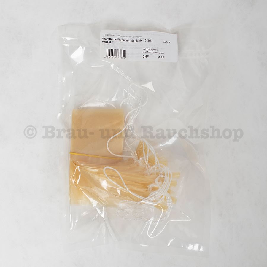 Wursthülle Fibran Kaliber mit Schlaufe 10 Stk. / 4.3 x 30 cm
